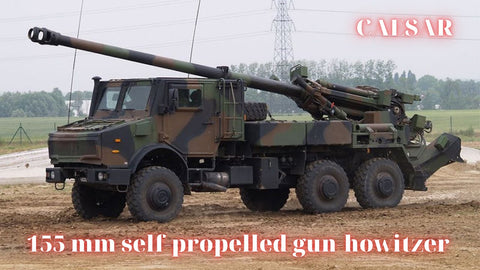 TThe Camion Équipé d'un Système d'Artillerie (English: "Truck equipped with an artillery system") or CAESAR is a French 155 mm, 52-caliber self-propelled gun that can fire 39/52 caliber NATO-standard shells. It is installed on a 6x6 or 8x8 truck chassis. Equipped with an autonomous weapon network incorporating an inertial navigation system and ballistic computer, the CAESAR can accurately strike targets more than 40 kilometres (25 mi) away using "Extended Range, Full Bore" (ERFB) ammunition with base bleed,[3][irrelevant citation] or targets over 55 kilometres (34 mi) away using rocket-assisted or smart ammunition