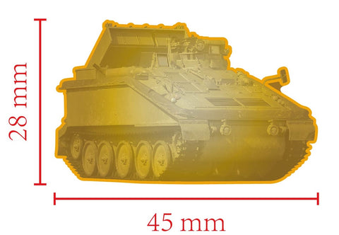 FV102 Striker was the Swingfire wire-guided anti-tank missile carrying member of the CVR(T) family. The FV102 Striker was externally very similar to the FV103 Spartan but carried five missiles in a ready-to-fire bin at the back of the vehicle. Five reload missiles were carried in the vehicle. The bin was elevated to 35° (622mils) for firing. The targeting sight could be demounted and operated at a distance from the vehicle which could remain in cover, even completely screened as the missile can turn up to 90° after launch to come onto the target heading. The missiles were originally steered by joystick control using manual command to line of sight (MCLOS). This was later updated to the semi-automatic command to line of sight (SACLOS) system where the controller merely sights the target. Secondary armament was a general purpose machine gun.