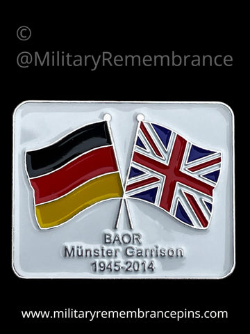 This pin badge was designed and created by Hilde & Christoph Junker also Allan Small, to support the Facebook group The Münster Garrison Club. Due to economic reasons It has now been kindly agreed that I can supply this pin badge to the group and any other persons who served within BAOR and Munster Garrison. Donations however will go to SSAFA The Armed Forces Charity.